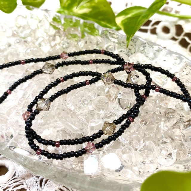 【3WAY】ビーズマスク&メガネストラップ(ピンク・スワロフスキー)