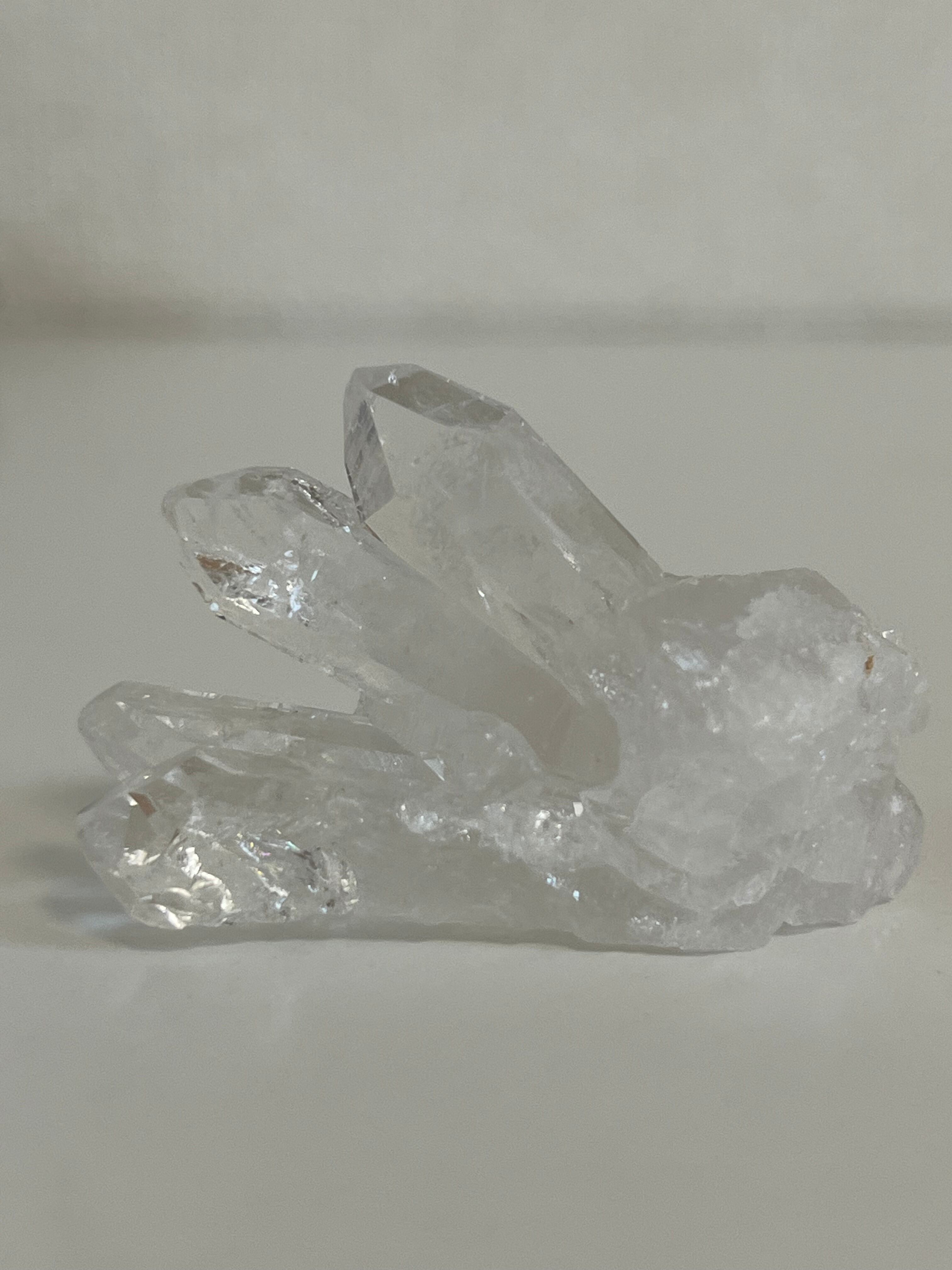 大変透明度が高く希少な、ブラジルのトマスゴンサガ産水晶のミニクラスターです。