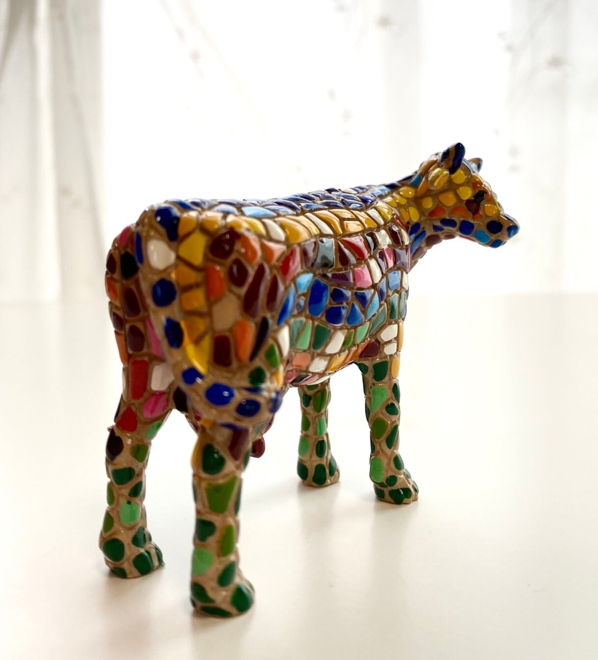 ガウディの建築物に使われていることで有名なモザイク技法をイメージして作られたこの人形は、ずっしりとした樹脂製の体の上に鮮やかな手塗りが施されています。