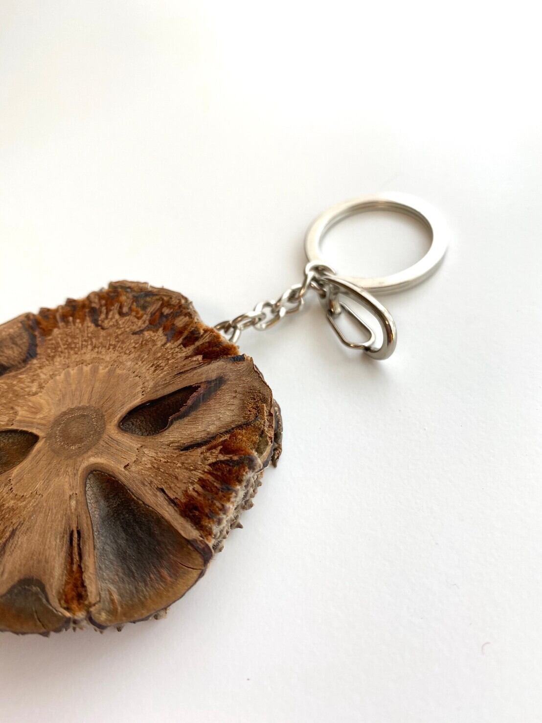 オーストラリア産原産のバンクシアという木の実を輪切りにした、とてもめずらしいキーチェーンです。