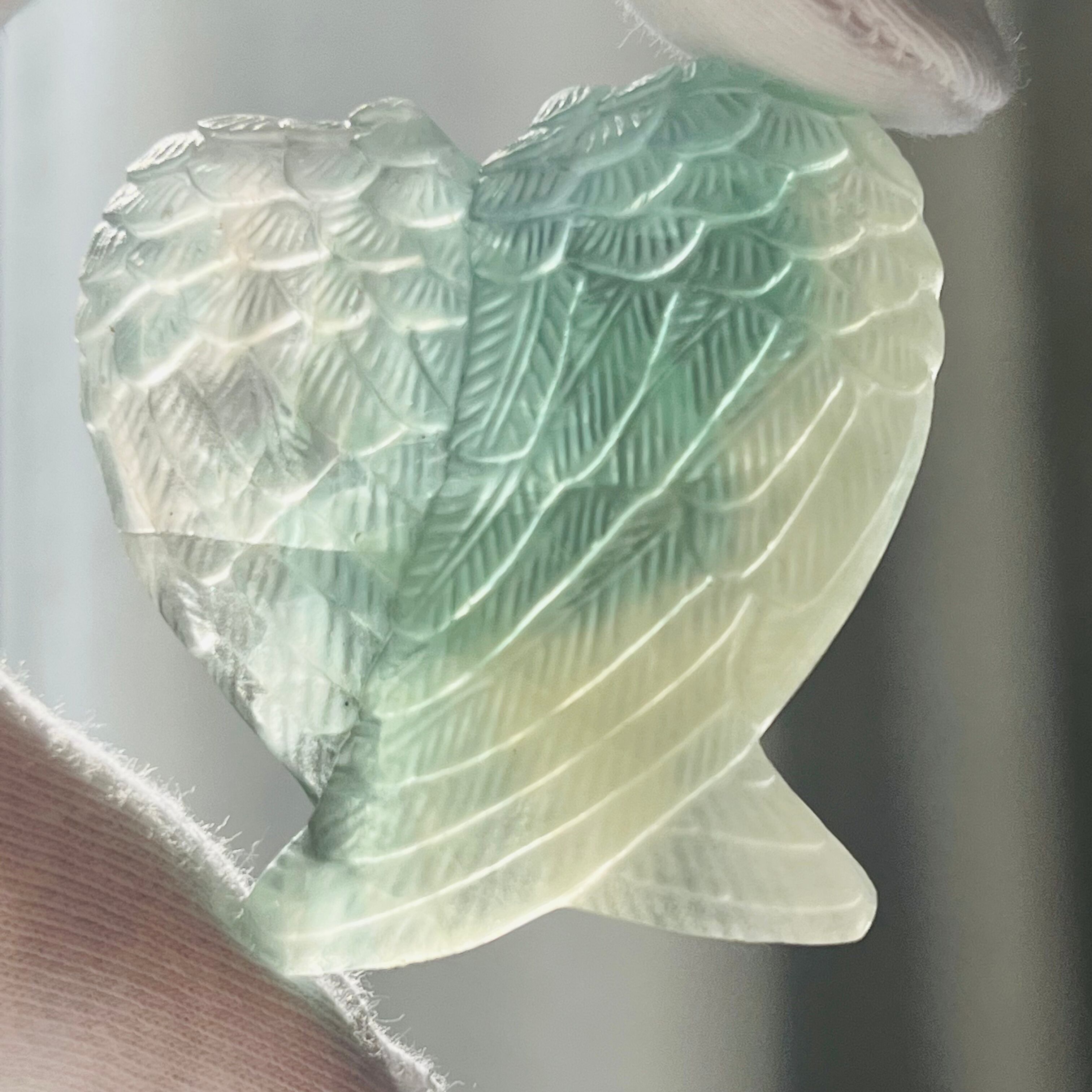 透明感にあふれた、とても美しいフローライトの天使の羽です。