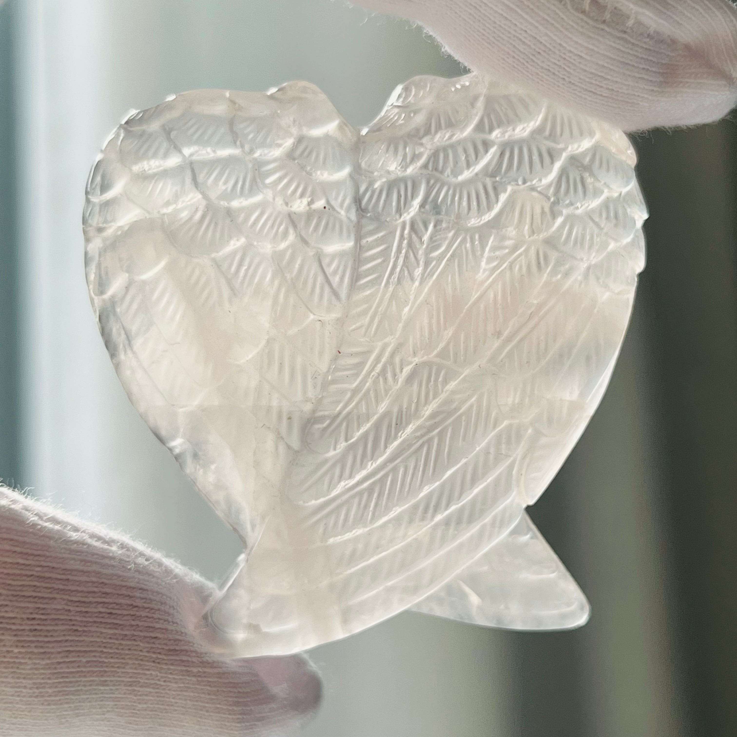 透明感にあふれた、とても美しいローズクォーツの天使の羽です。