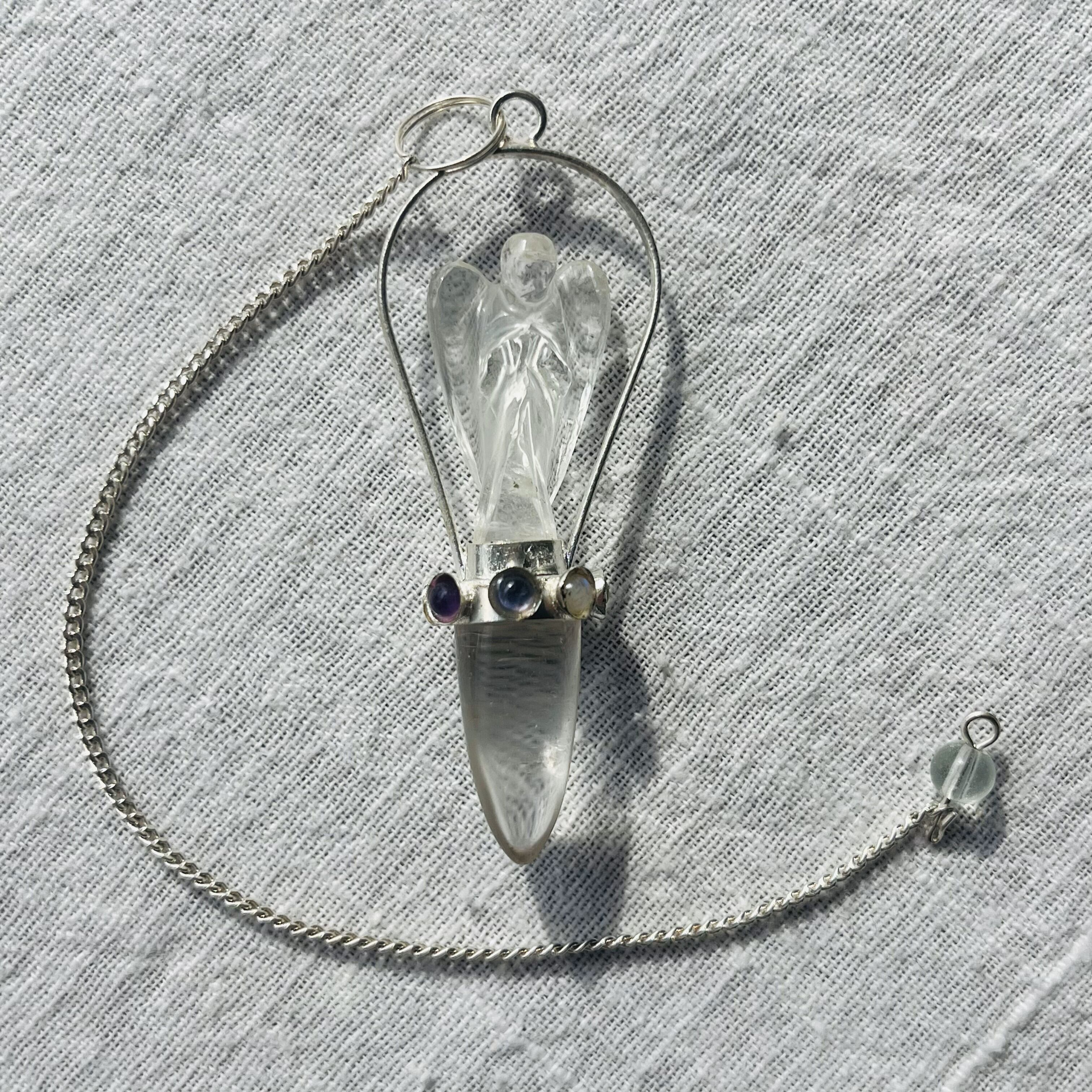 美しい水晶で作られた天使像のペンデュラムです。